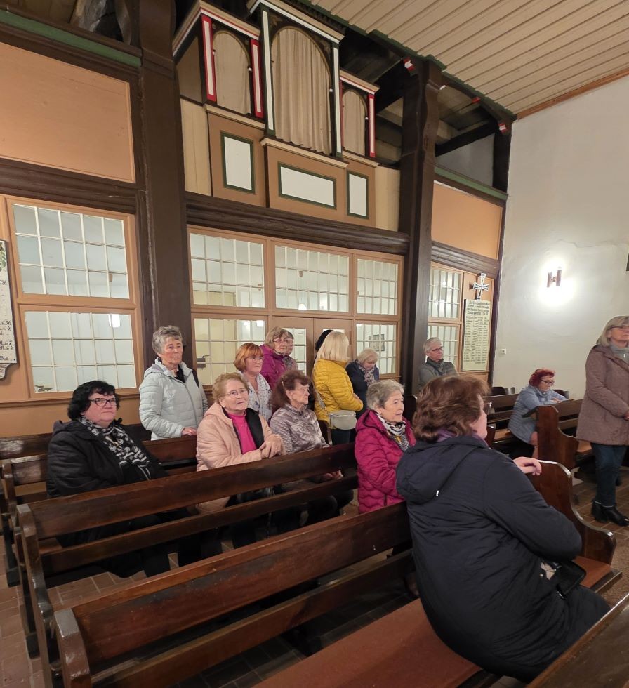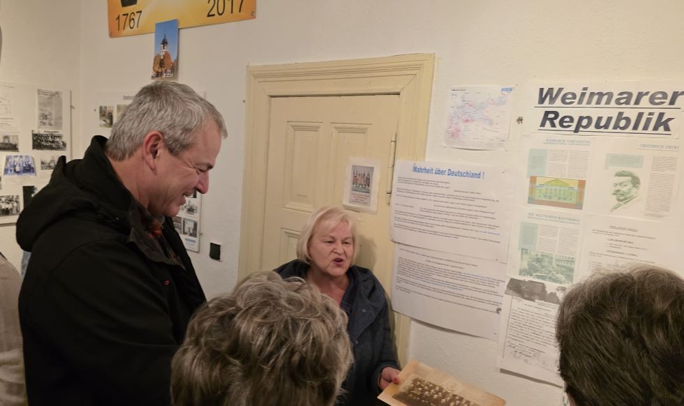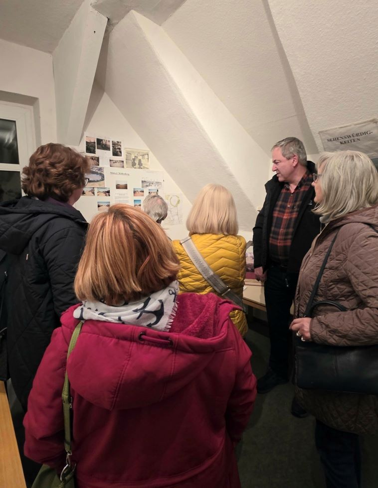 Der Ortsbürgermeister von Mützel, Rüdiger Feuerherdt, sowie zwei Vertreterinnen des Heimatvereins, Verona Thornow und Sophie Nedwieck, führten unsere Gruppe durch die Kirche und die Heimatstube des Ortes.